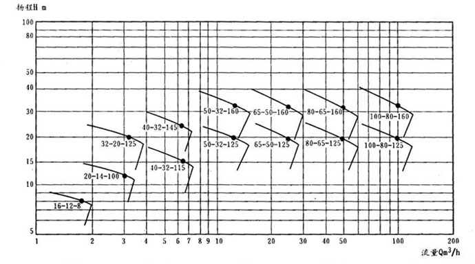| 型 號 | 口徑(mm) | 流量 (m3/h) | 揚程 (m) | 電機功率 (kW) |