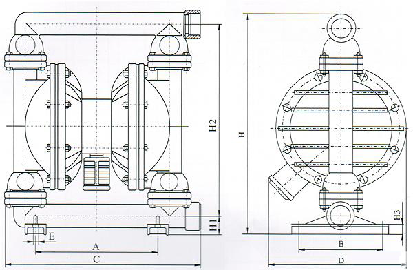 三、QBK氣動(dòng)隔膜泵安裝尺寸