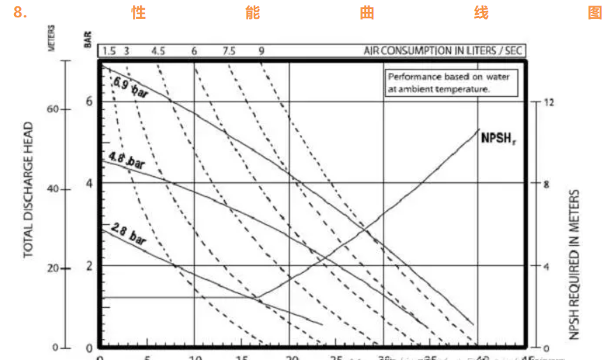 我們一般參考曲線圖來看泵是否滿足應用需求,就如上圖的范例所示,X-軸代表流量,Y-軸代表背壓。