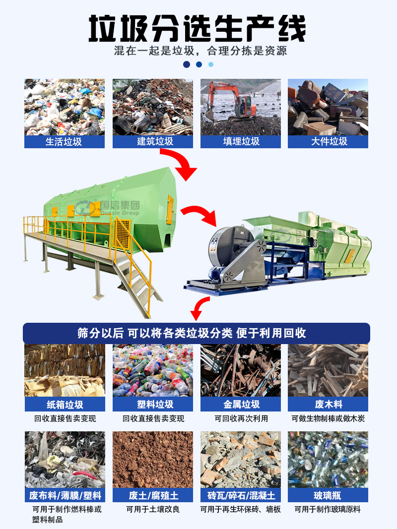 生活垃圾分選處理設(shè)備是城市環(huán)境管理中不可或缺的一部分,它通過先進(jìn)的技術(shù)和設(shè)備對生活垃圾進(jìn)行有效的分類和處理。這些設(shè)備通常包括粗分選、精細(xì)分選和深度加工三個(gè)層次的系統(tǒng)。